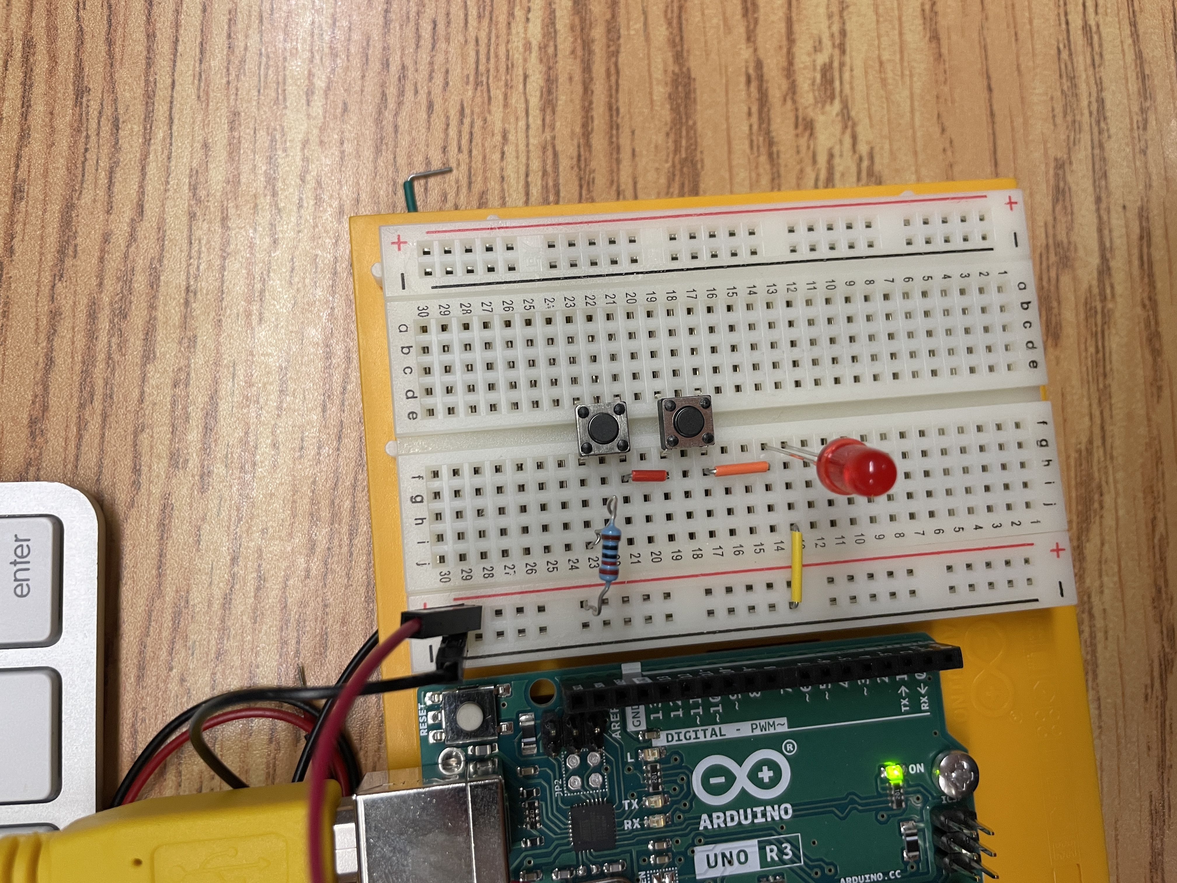 2:We would use both wires to connect both the lights and the button since we need the button to make the light work, there is also additionning with the sound since if there is a wrong answer then the sound would beep.